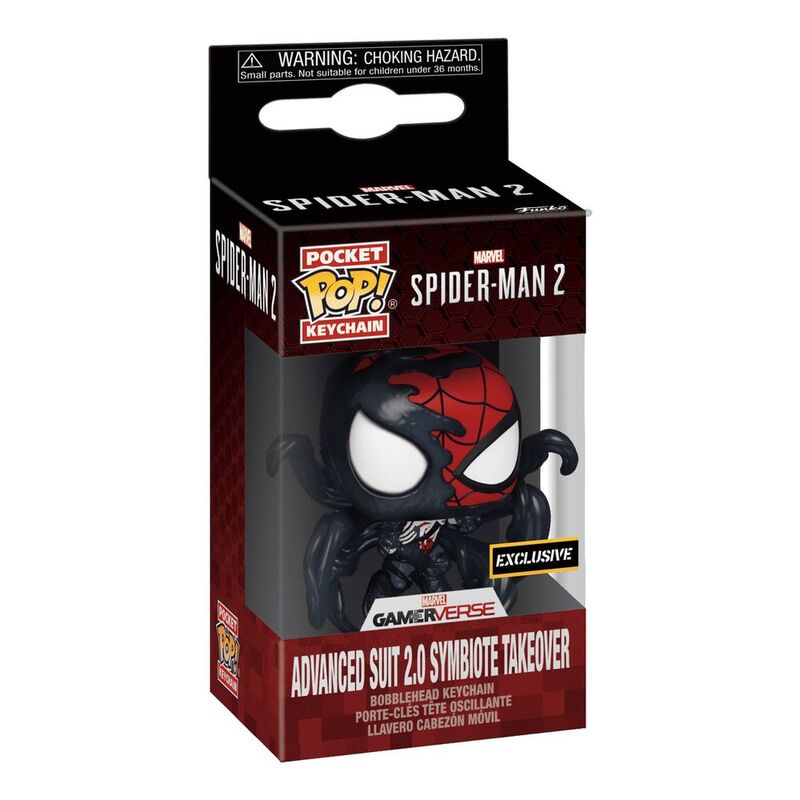 Your favorite wall-crawling hero has arrived! Leaping through the air, Peter Parker is eager to save the day in your Spider-Man 2 collection as Spider-Man! Assemble your team of heroes when you add him to your Marvel Gamerverse lineup as this exclusive Pop! Keychain Advanced Suit 2.0 Symbiote Takeover. Vinyl keychain is approximately 4-inches long.
