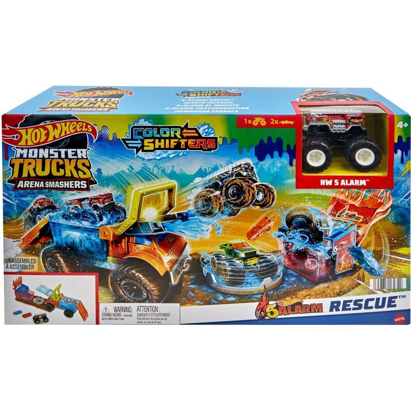 Hot Wheels Monster Trucks Arena Smashers Color Shifters 5 Alarm Rescue Playset With 3 1.64 Die-Cast Cars