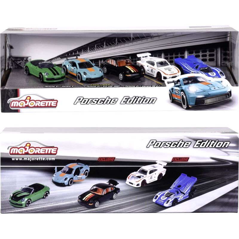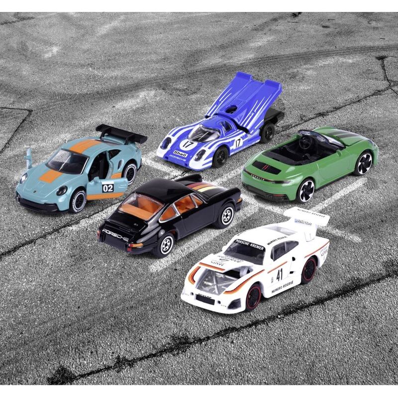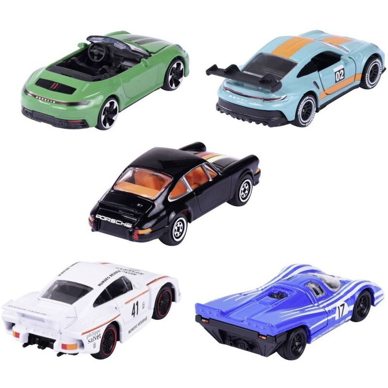 Majorette – Porsche gift set (set of 5 toy cars) - 5 model vehicles (7.5 cm long), includes 2 exclusive models, for children aged 3 and above