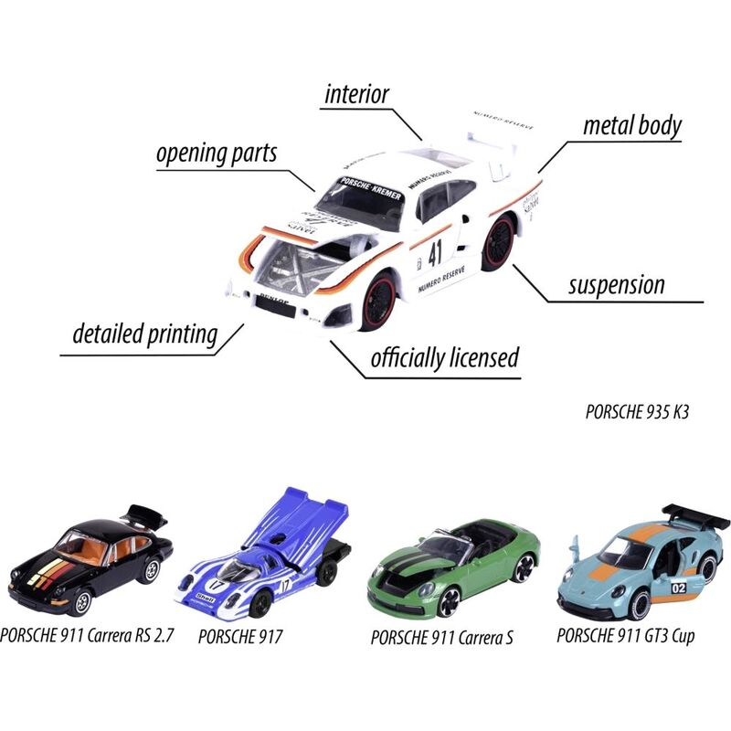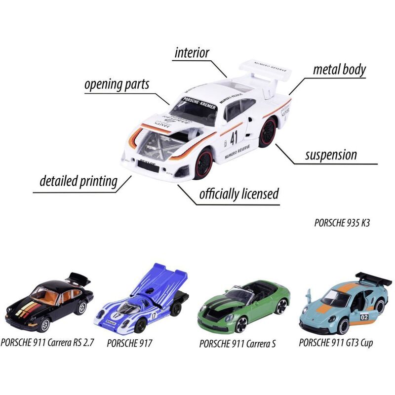 • Legendary Porsche vehicles – Officially licensed by Porsche, these five toy cars from Majorette are a must-have addition to any racing track. Two of the vehicles are available only in this set.