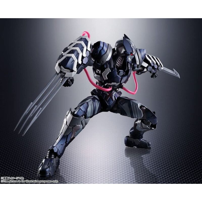 The newest villain in the TECH-ON AVENGERS series, Venom Symbiote Wolverine, joins S.H.Figuarts with diecast metal parts! Finished in metallic colors to accentuate the fusion of Wolverine with Venom, it features tube parts molded in translucent plastic, repulsor effects that can be used with other figures, and a stand that helps support dynamic poses, letting you re-create your favorite battle scenes!