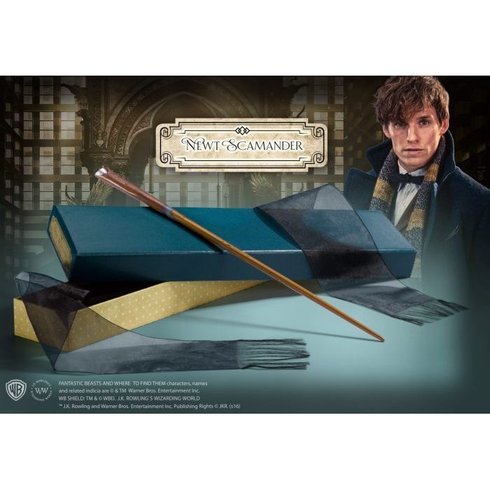 Newt Scamander is a magizoologist and author of "Fantastic Beasts and Where To Find Them", a book on magical creatures owned by Harry Potter during his tenure at Hogwarts School. The wand, measuring approx 35cm, comes in a special blue collector's box.