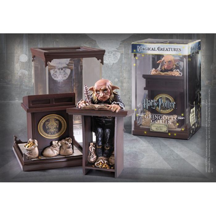 A finely crafted, hand-painted plastic sculpture of the Gringotts Goblin. The Gringotts Wizarding Bank is owned and operated by goblins and was founded by a goblin called Gringott.