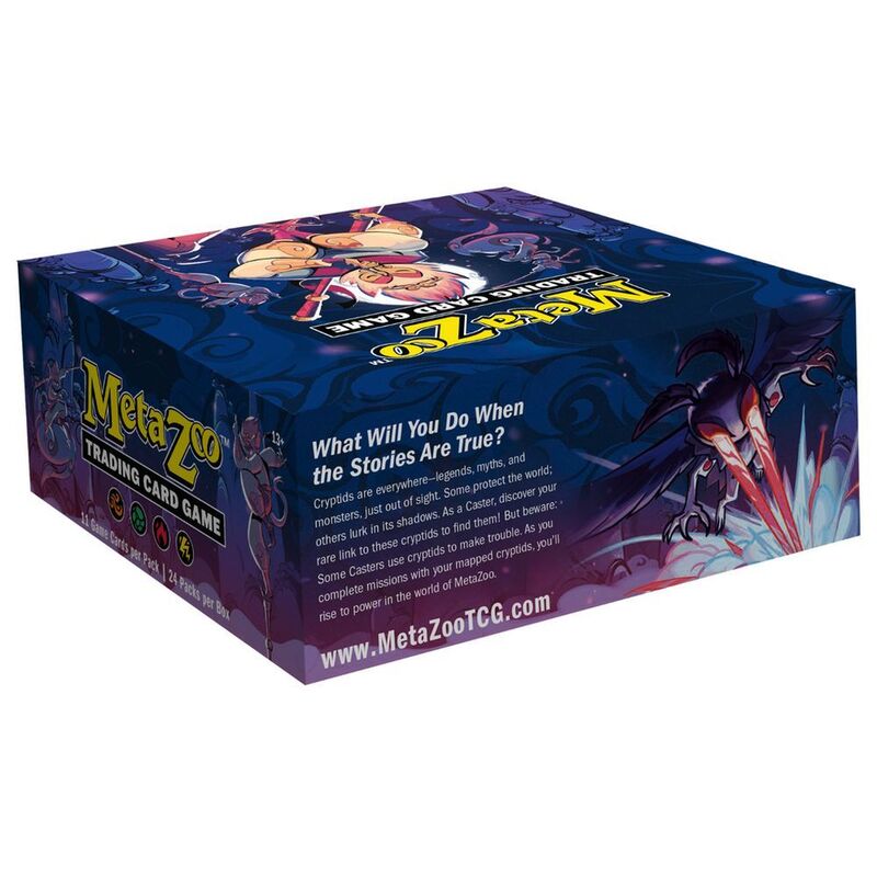 MetaZoo is back and more thrilling than ever! Dive headfirst into the mysterious and magical world of cryptids with the MetaZoo TCG Base Set Booster Box! Uncover and collect your favourite Cryptid Creatures. Including 24 individual Booster packs, each pack offers new cards that strengthen your deck to drive your strategy and outwit your opponents in epic gameplay. Are you ready to embrace the adventure? Your journey begins now!