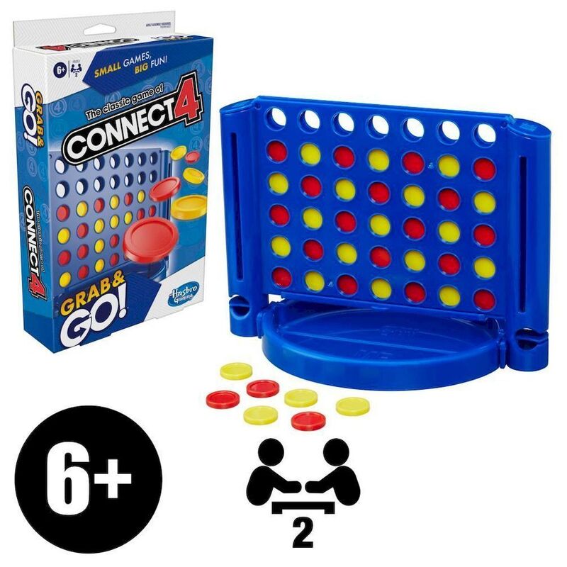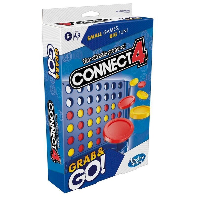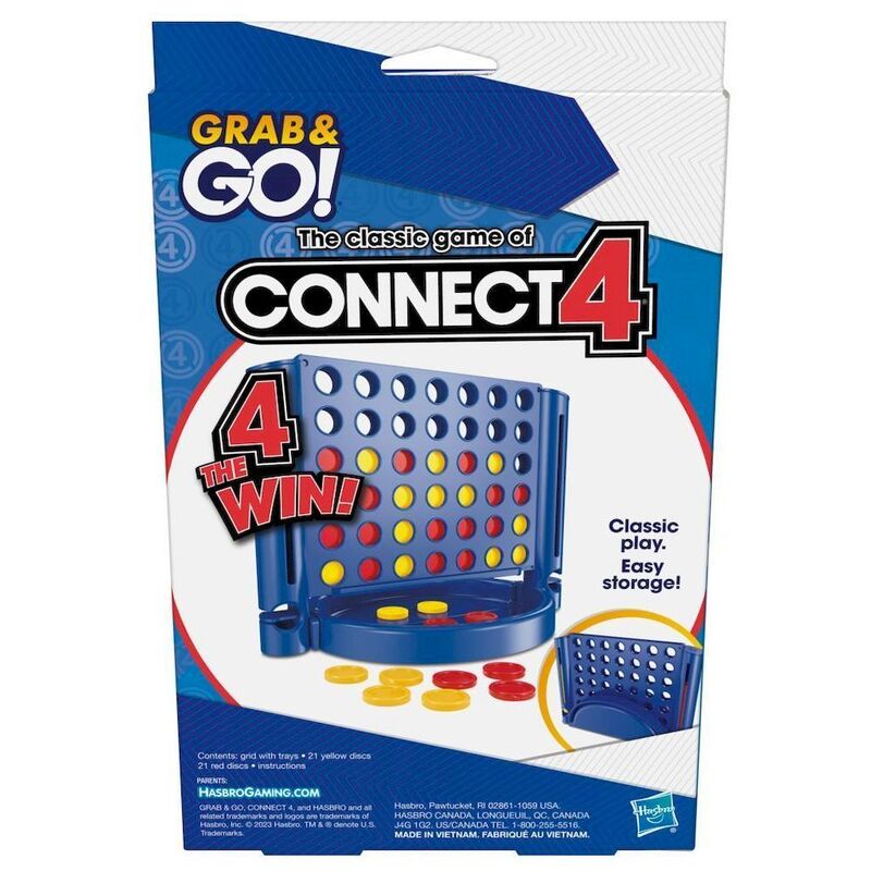 • The Connect 4 Grab and Go game is a mini, portable version of the Connect 4 game for fun on the run.