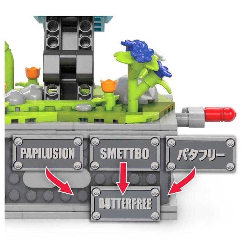 - 605-piece building set with a mechanized Butterfree: Turn the crank to activate Butterfree's wings