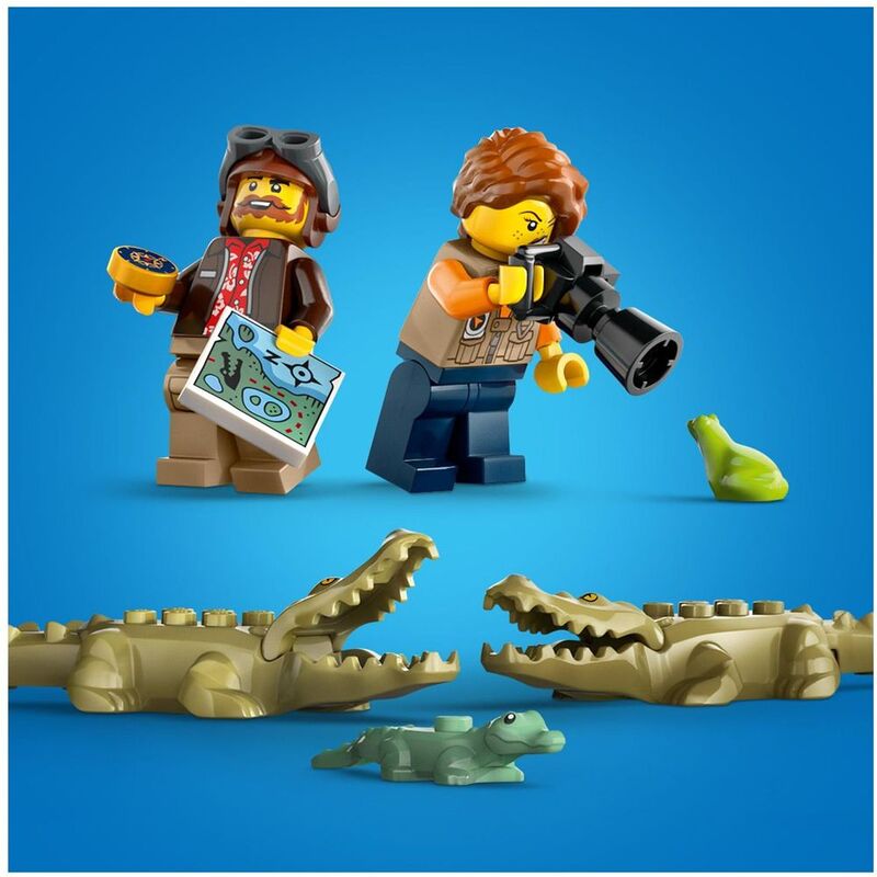 - What’s in the box? – This creative building toy includes a LEGO® seaplane, jungle cave setting, photographer and LEGpilot minifigures, a frog figure and 3 crocodile action figures