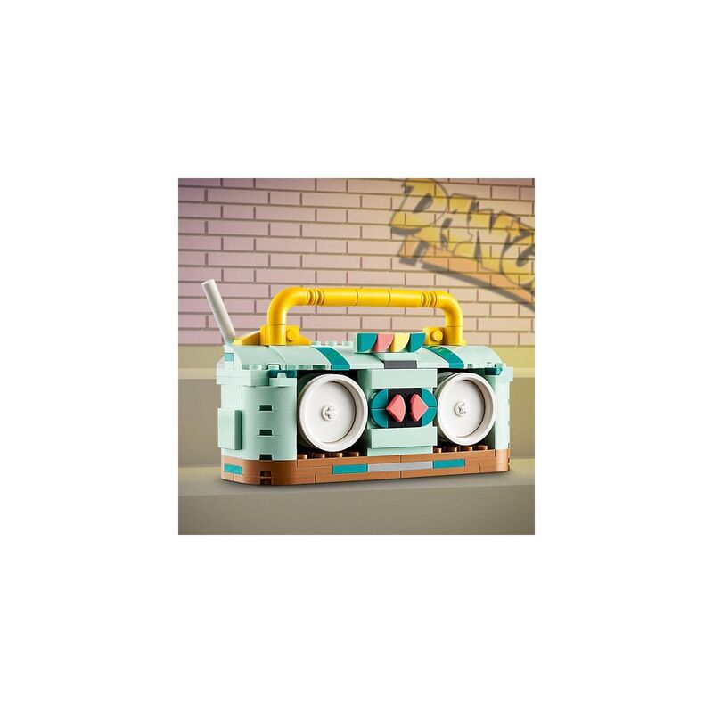 This LEGO Creator 3in1 set gives kids 3 different build-and-play experiences with the same set of bricks. They can build a roller skate toy and rebuild it into a colourful retro mini skateboard with 4 moving wheels or a retro boom box radio with a small antenna. All 3 models make eye-catching display items for kids after their playtime adventures.