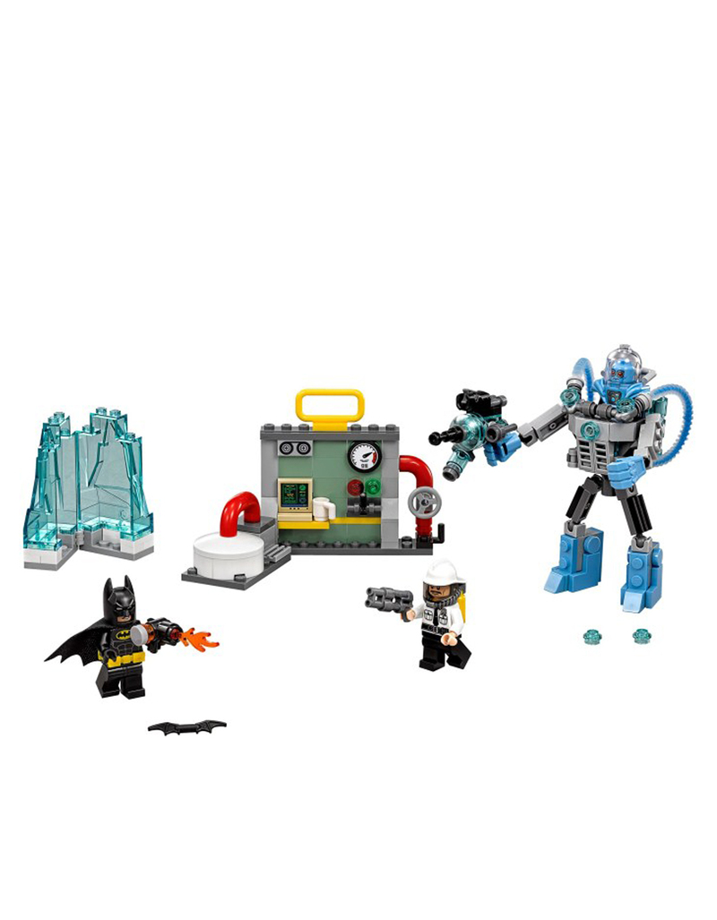 Help Batman™ defend the Gotham City Energy Facility from Mr. Freeze's Exosuit assault and save the security guard from the ice prison in THE LEGO® BATMAN MOVIE: Mr. Freeze™ Ice Attack set. The set features Mr. Freeze's posable Exosuit with room for a minifigure and a stud-shooting freeze gun, plus a detailed power plant build and an opening ice prison. Includes three minifigures and assorted play-inspiring weapons and accessory elements including Batman's flamethrower.