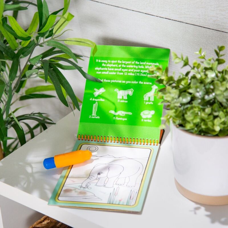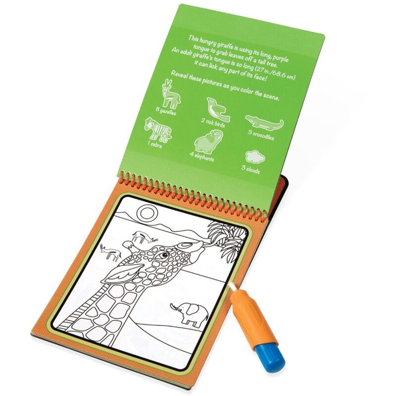 • Activity book of 4 safari-themed coloring boards and refillable water pen