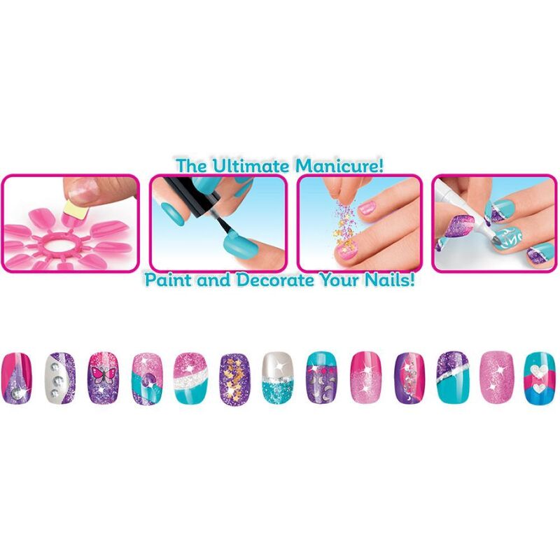 The ultimate manicure and pedicure set! this set includes everything you need to pamper yourself. Choose from a variety of nail paint colors, use nail art markers to create unique designs, and finish with some lovely stickers and glitter. Relax and enjoy the inflatable foot bath! bring the spa experience right into your own house! 7 nail paints, 5 nail rings, 2 pedi soak bags, 1 nail drier, 1 pair of spa slippers, 4 bags of sequins, 3 markers, 1 sheet nail stickers, 1 pair foam toe separators, 1 nail file, 1 page of stick on jewels, 70 sticky stickers, and instructions are included.