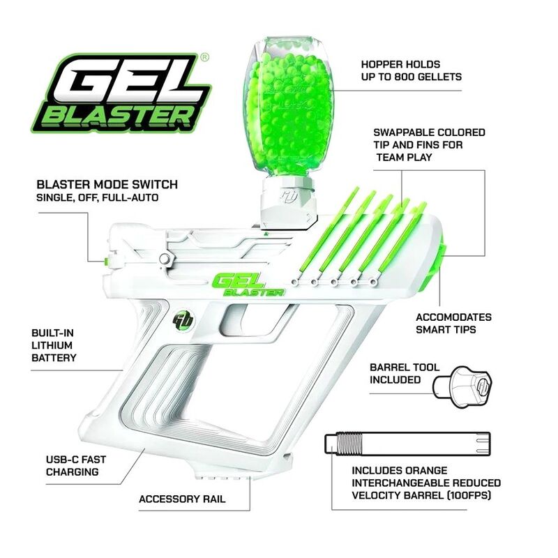 - SEMI TO FULL AUTO ACTION: Features 2 “Blast Modes” for enhanced combat strategy. Choose between semi automatic (1 Gellet per trigger pull) or Full Automatic (8 Gellets per second when holding down the trigger) and get ready to dominate your battlefield.