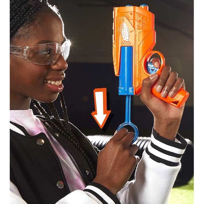 • EASY PULL-BACK PRIMING: Prime the blaster by pulling back the handle