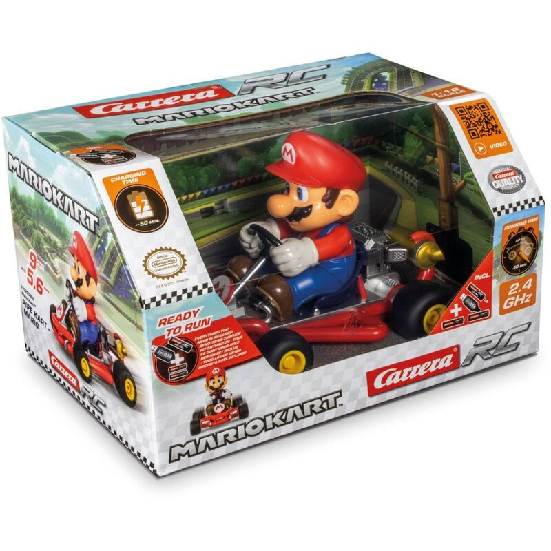 Glide to victory with Mario and the extra-light Pipe Kart Mario puts his foot to the floor for every home-circuit Mushroom Cup challenge in his Carrera RC Mario Kart Pipe Kart! The extra-light tube kart is a classic feature of the Mario Kart 8 and Mario Kart 8 Deluxe video games, and now guarantees plenty of off-screen real-world racing thrills.