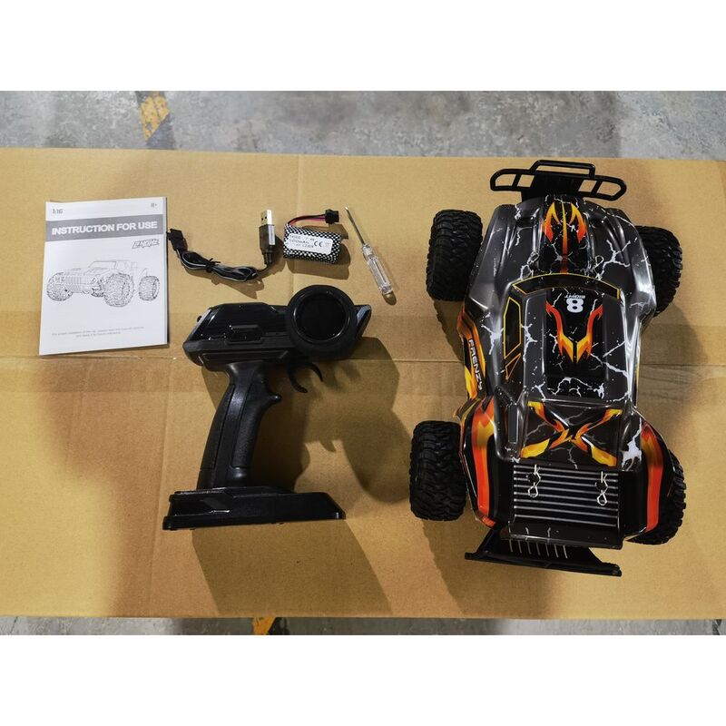 High-speed off-road vehicle with new light remote control system for even more fun. - New power system, equipped with a fixed motor. - The remote control truck has a maximum speed of 30+ km/h. - Rich lighting effect: In addition to the standard equipment. - PVC shell, nylon body shell, rubber tires. - Fully functional 2.4GHz proportional wireless control system. You can control and toggle 20 different lighting effects to take photos of your car in the first place. - It can reach speeds of up to 18 km per hour, providing you with plenty of high-speed excitement on any surface. Plus, it features a playtime of up to 15 minutes for extended play. - It comes with an impressive range of up to 50 metres, so you can control your vehicle over vast terrains with ease. - Scale 1:16. - Made of high quality materials for durabilit