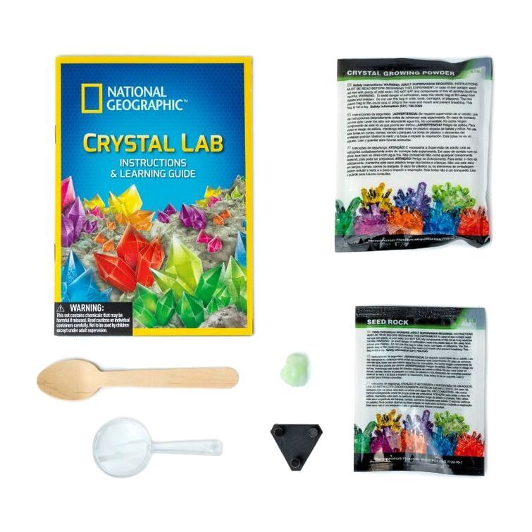 Grow an awesome glowing crystal with the National Geographic Glow-in-the-Dark Crystal Lab! Easy-to-follow instructions lead you through the crystal growing process, and in is little as 3 days your crystal will be ready for display. Show off your crystal on the included display stand and learn more about crystals in the full-color learning guide. You'll even receive a genuine fluorite crystal specimen. There's no better way to inspire a lifelong love of science and geology!