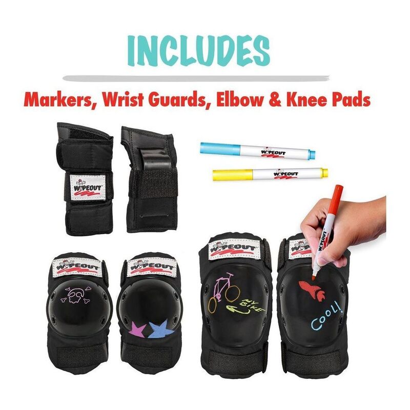 Wipeout Dry Erase Kids' Pads Black Wp4102 (3 Pairs) (Knee/Elbow/Wrist) (Ages 5+)