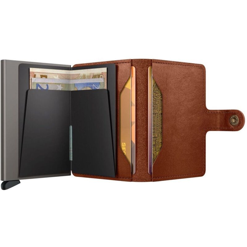 Small in size and surprisingly large in storage capacity, the Miniwallet combines the best of both worlds. The exterior holds banknotes, receipt and cards, while the aluminium Cardprotector allows you to slide out cards with one simple motion and protects them from bending, breaking and unwanted wireless communication.