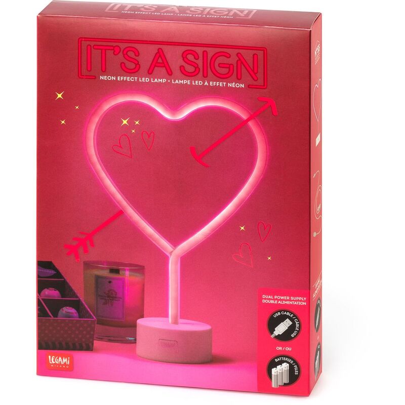 Legami Neon Effect LED Lamp - It's a Sign - Heart