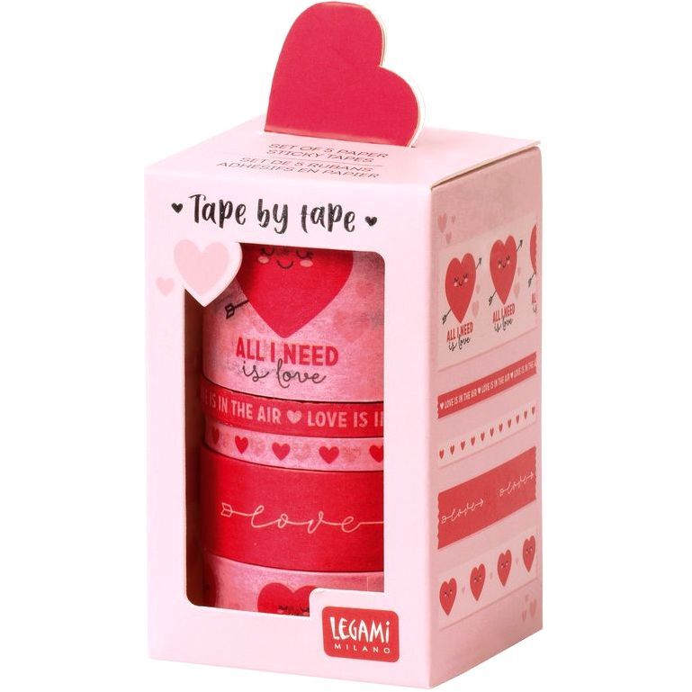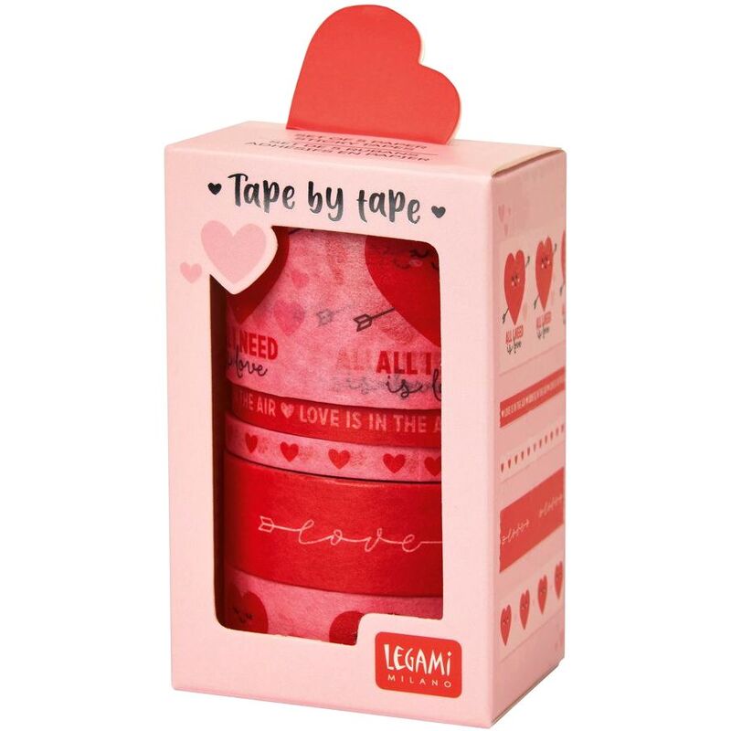 Tape by Tape is a set of 5 colourful adhesive paper tapes from Legami to make gift-wrapping quick, convenient, and super-romantic. Each tape has a different width and pattern, for 5 incredibly cute meters of hearts and messages of love.