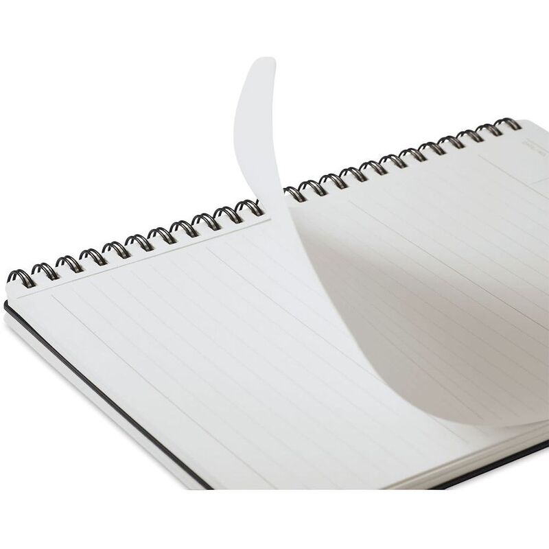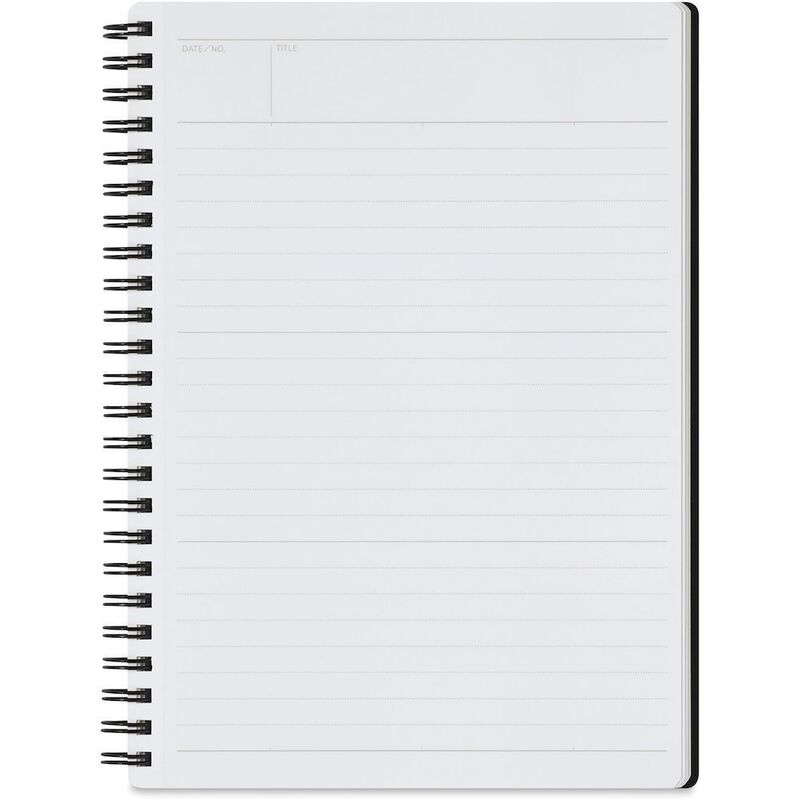Model #195 is a classic lined format, with 80 sheets of premium paper printed with a light grey 7 mm rule. The top of each page has a generous space for a title and date. The book is bound with a sturdy double-wire coil and protected by splash-resistant plastic covers in front and back. Each page is perforated for easy, clean removal.