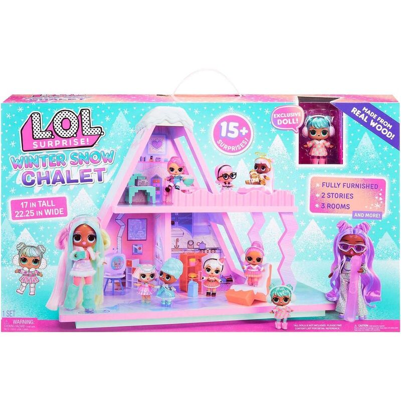 The chalet features a bedroom, living room, kitchen, patio, and balcony the perfect setting for all your L.O.L. Tots and Tweens fashion dolls (each sold separately) Create your own frosty fun with the L.O.L. Surprise! Winter Snow Chalet!